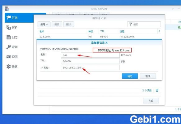 输入DDNS域名和NAS内网IP地址