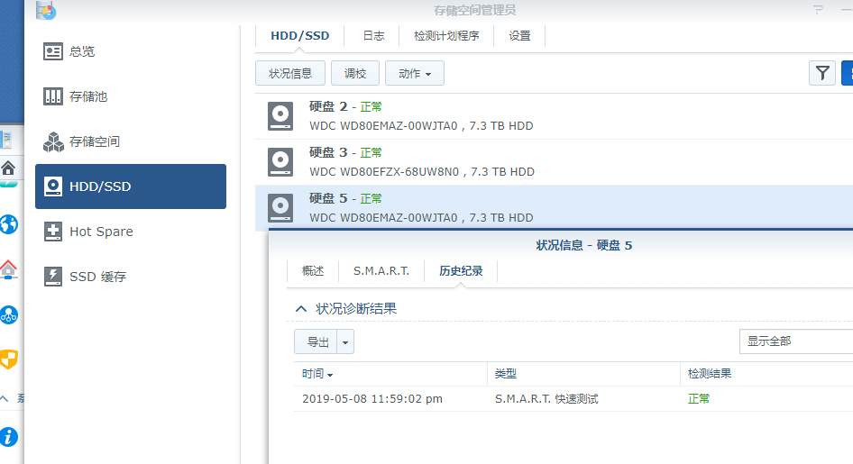 2、重启,这次我选了菜单的第三项,结果3个硬盘全部正常找到,还完美的隐藏了50M的虚拟引导盘,并且存储空间管理员那里硬盘信息可以正常检测和查看SMART信息。