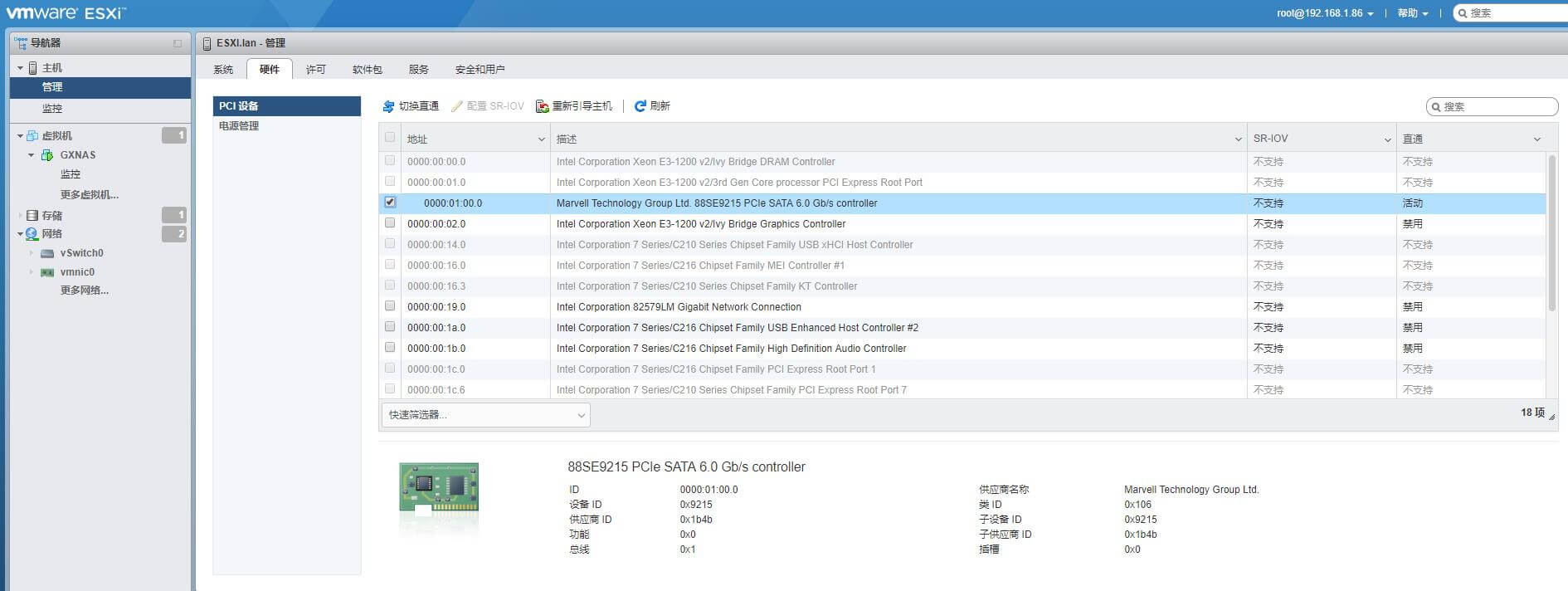 1、虚拟系统:ESXI6.7,安装在SSD上,SATA扩展卡做了PCI直通;