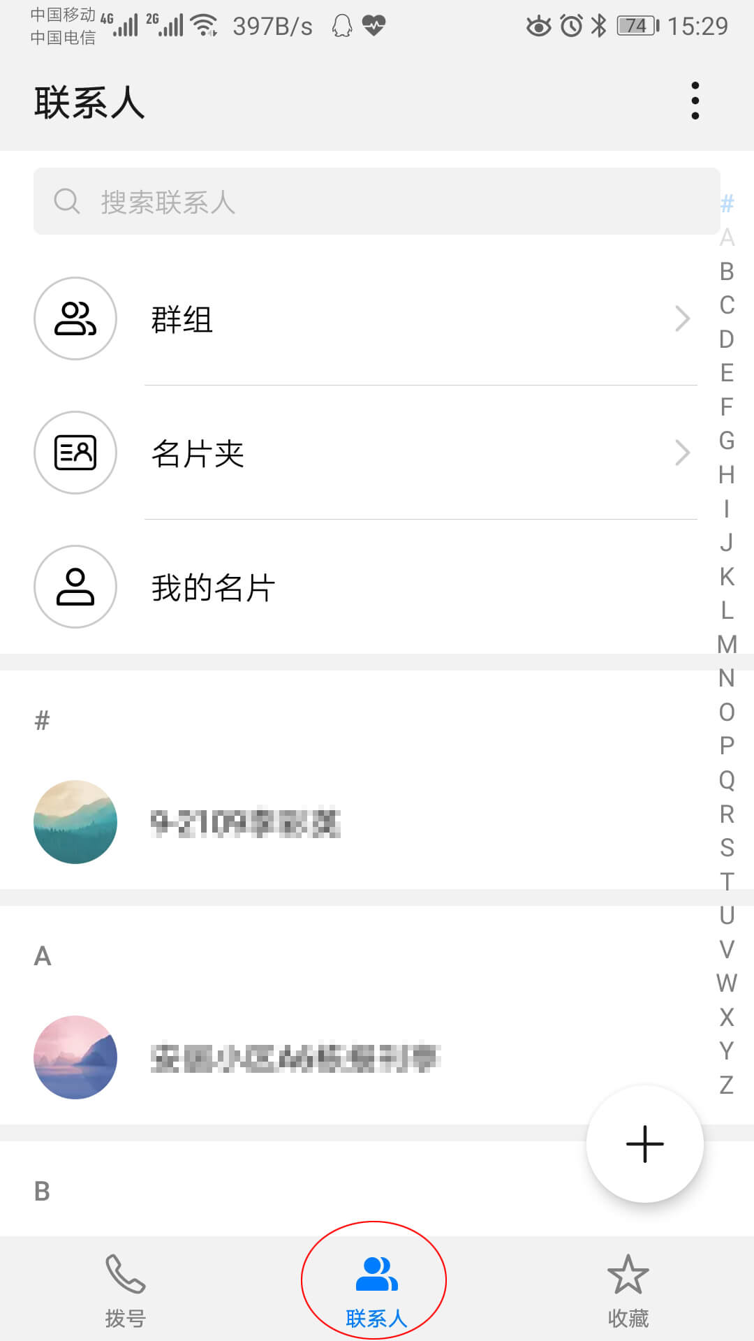 3、打开安卓手机(本文以华为手机为例,苹果手机请直接看最后一个图。),进入“联系人”
