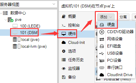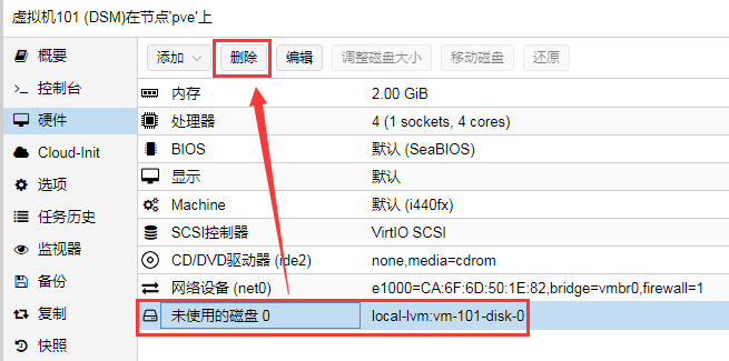 (101是虚拟机编号,synoboot.img是刚才上传的引导镜像)