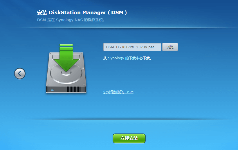 3、黑群晖系统PAT安装包(本教程安装DSM3617 6.2-23739版本)可从网盘下载,也可以从官网下载