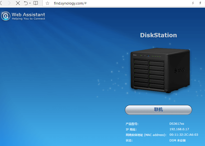 2、内网访问网页http://find.synology.com,找到未安装的群晖
