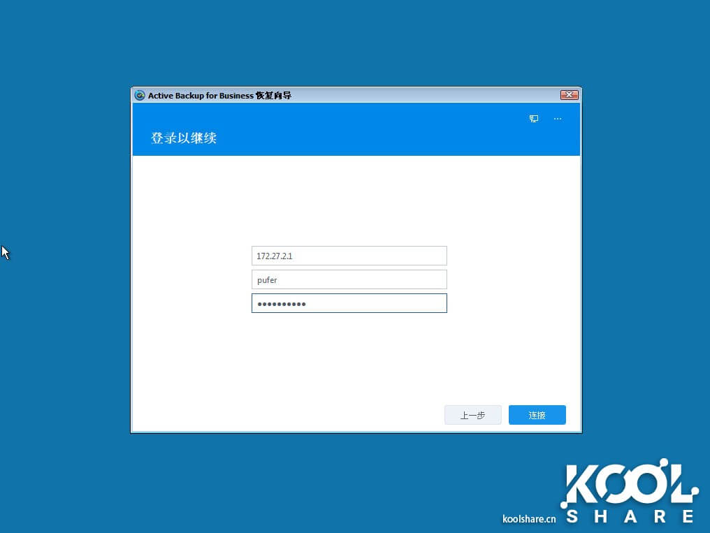 完成PE设置后,我们下一步,填入NAS的连接信息,账户信息。连接到NAS
