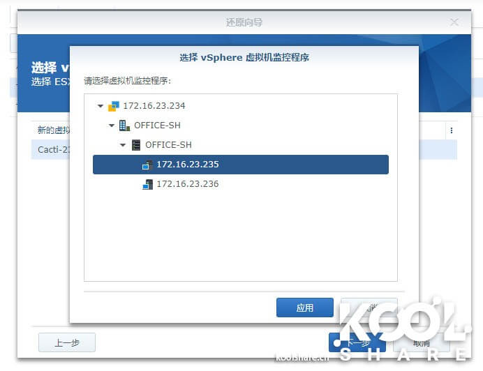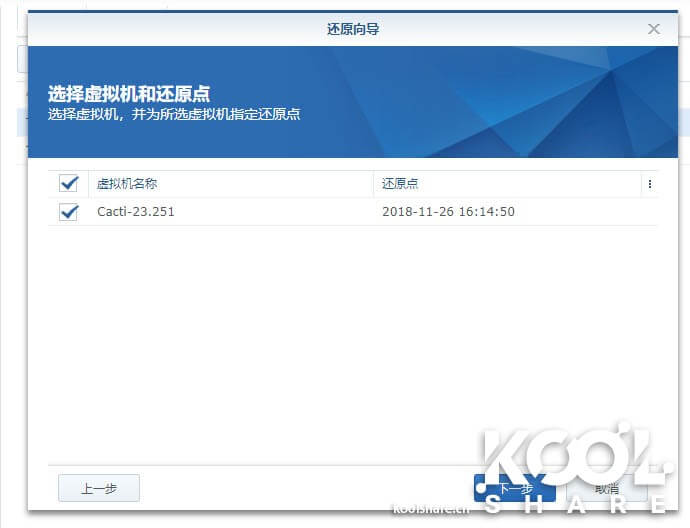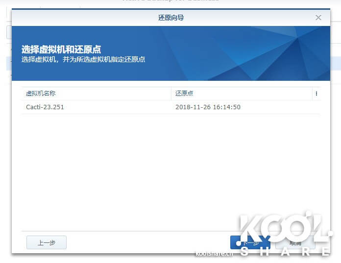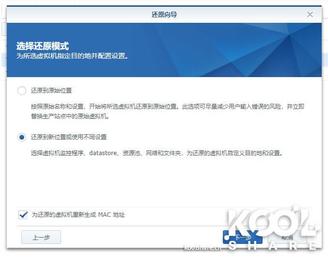 可以在Active Backup for Business中指定还原到哪台宿主机或者直接还原在集群上。
