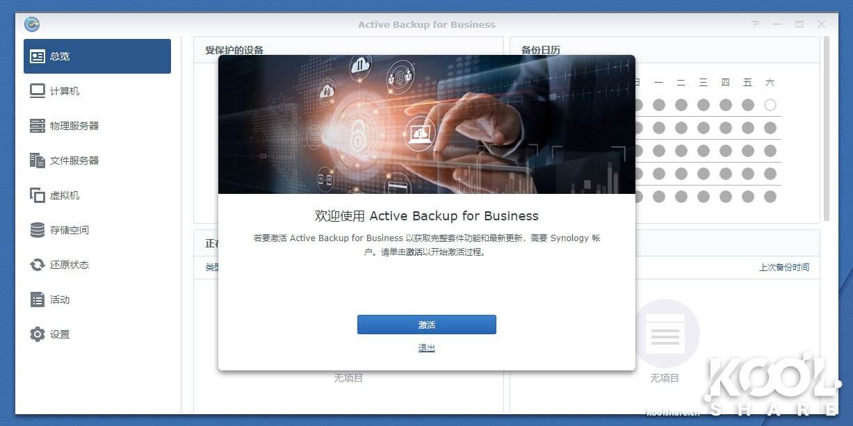 和其他套件不同的是,Active Backup for Business需要激活后才能使用。如果你使用的是黑群晖,可以联系博主洗白(博客右下角微信二维码),洗白以后可以激活。