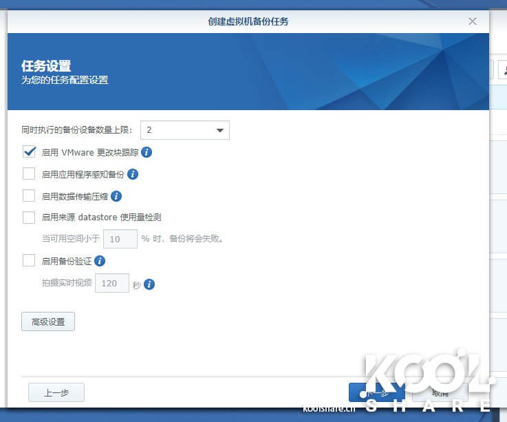 这边备份任务设置,可以限制同时备份任务个数,和备份相关设置。