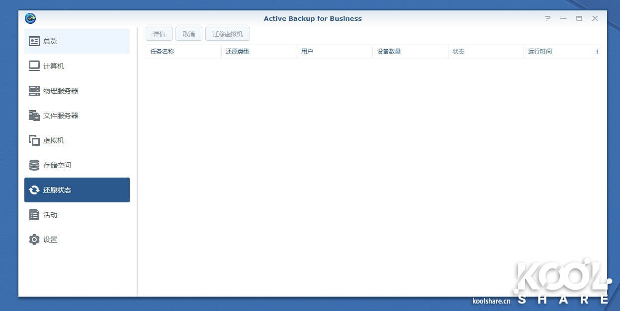 在Active Backup for Business还原进度中可以看到虚拟机还原的进度。
