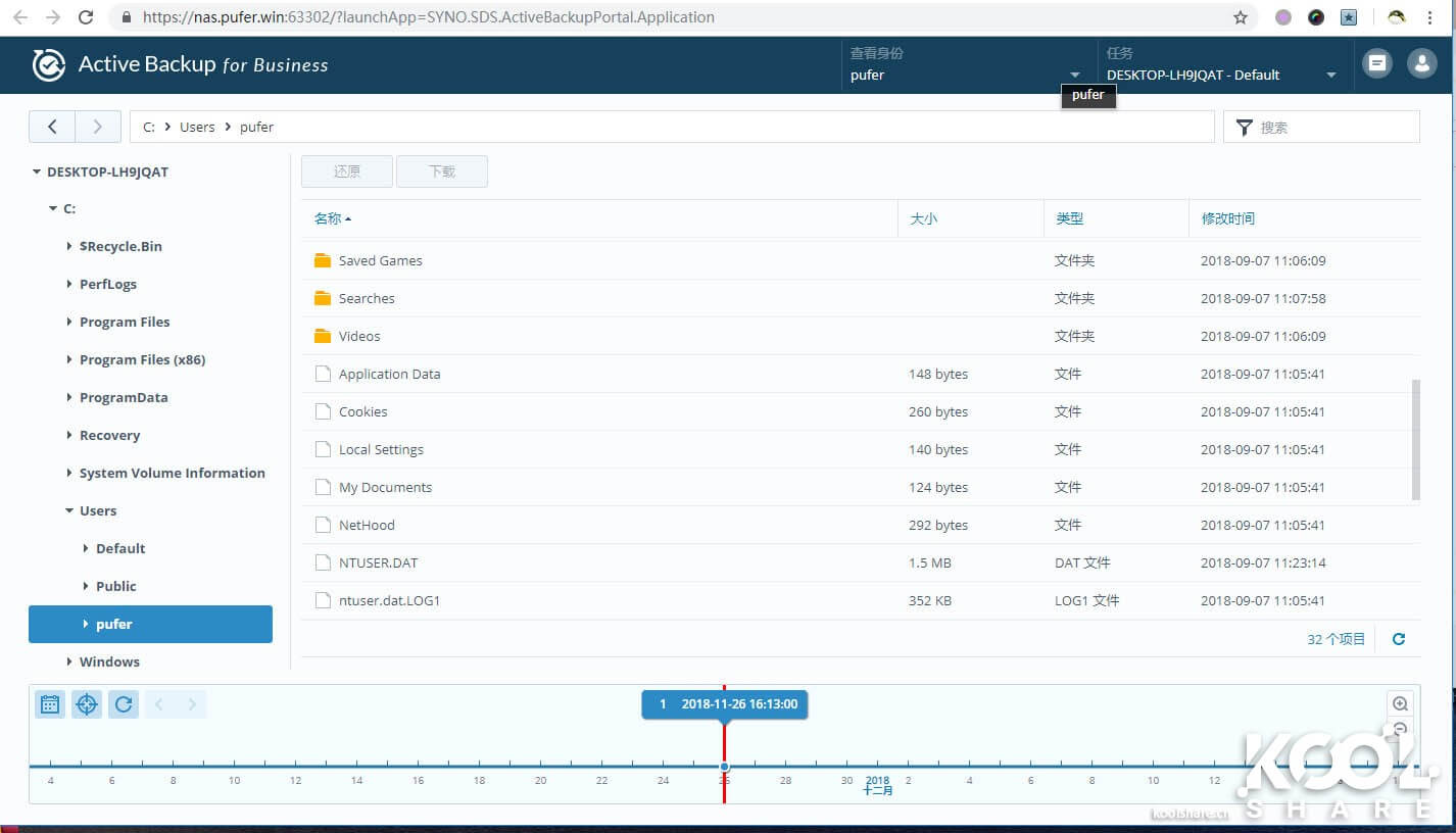 同样可以使用Active Backup for Business Portal来查看备份的磁盘镜像中文件。