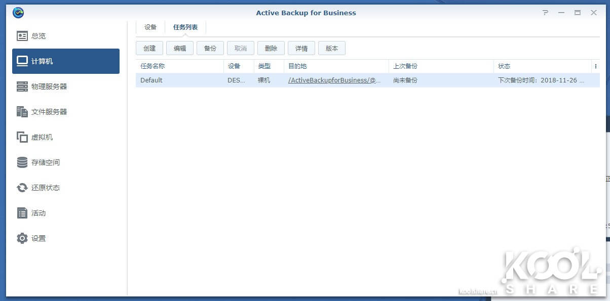 连接完成后Agent会做一个自动的默认配置,剩下操作都在群晖上完成。这种简单化的部署,对于企业IT来说非常方便的。在客户端安装完Agent后,就可以在群晖界面统一管理了。