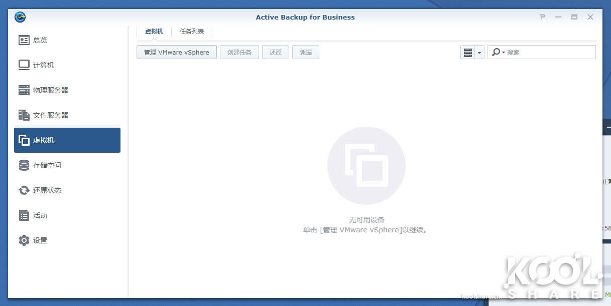 如果PC备份部分已经是让大家很激动的功能了,下面到更令人激动的时候了。Active Backup for Business完全可以支持VMware虚拟机的备份。无论是免费单节点的ESXi,还是商用版本的VMware vSphere,都是可以备份。