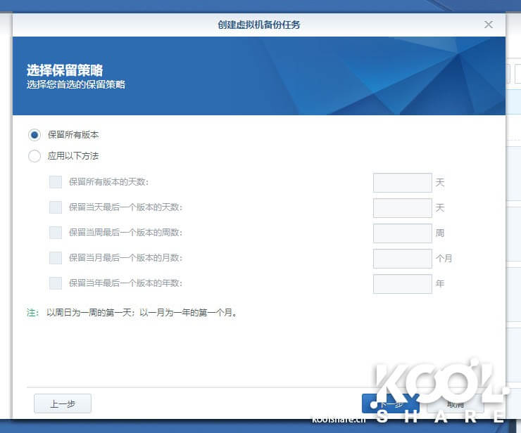 最后这边设置备份保留数量,这个和以前使用的群晖的备份套件是一个思路。