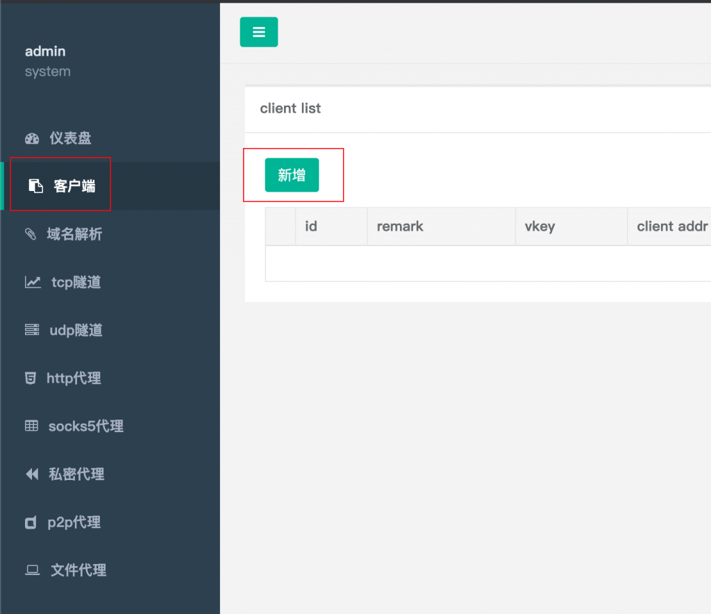 五、登录后台,添加一条客户端