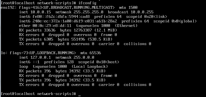 //查询ip信息[root@localhost ~]# ip addr//进入网卡配置目录[root@localhost ~]# cd /etc/sysconfig/network-scripts///列出目录所有文件和文件夹[root@localhost network-scripts]# ls