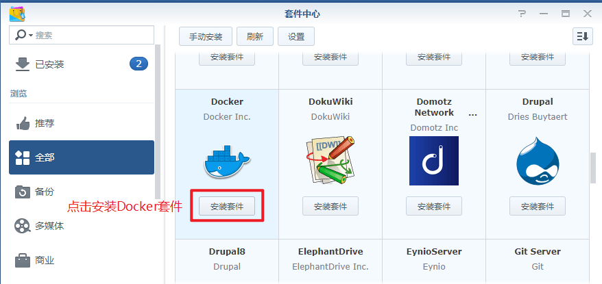 2. Docker安装成功后,我们的file station中即可看到多出来一个Docker文件夹。 我们在此文件夹内建里 jellyfin 文件夹。再进入jellyfin文件夹。分别建里 config文件夹及cache文件夹。