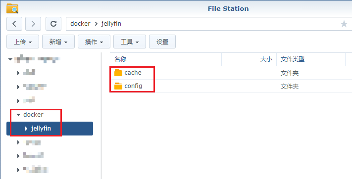 (分别为以后jellyfin的配置文件和缓存文件准备目录)