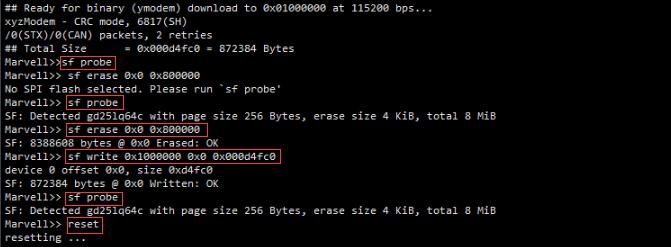 sf probesf probesf erase 0x0 0x800000sf write 0x1000000 0x0 0x000d4fc0sf probe