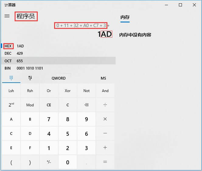 依次打开并点击:计算器 – 程序员 – HEX