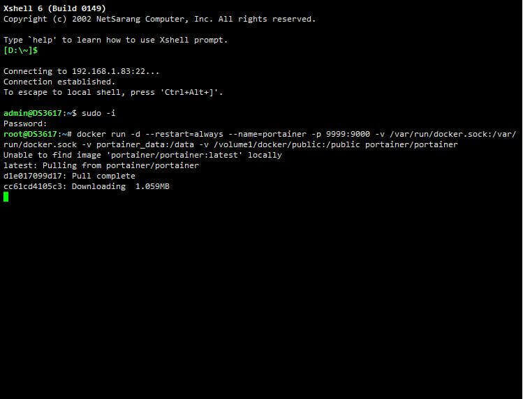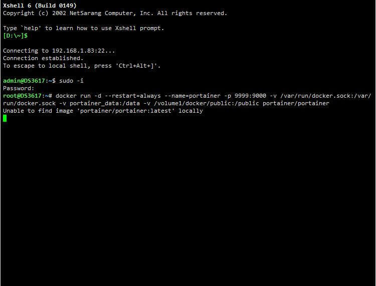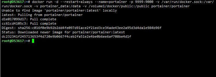 docker run -d --restart=always --name=portainer -p 9999:9000 -v /var/run/docker.sock:/var/run/docker.sock -v portainer_data:/data -v /volume1/docker/public:/public portainer/portainer