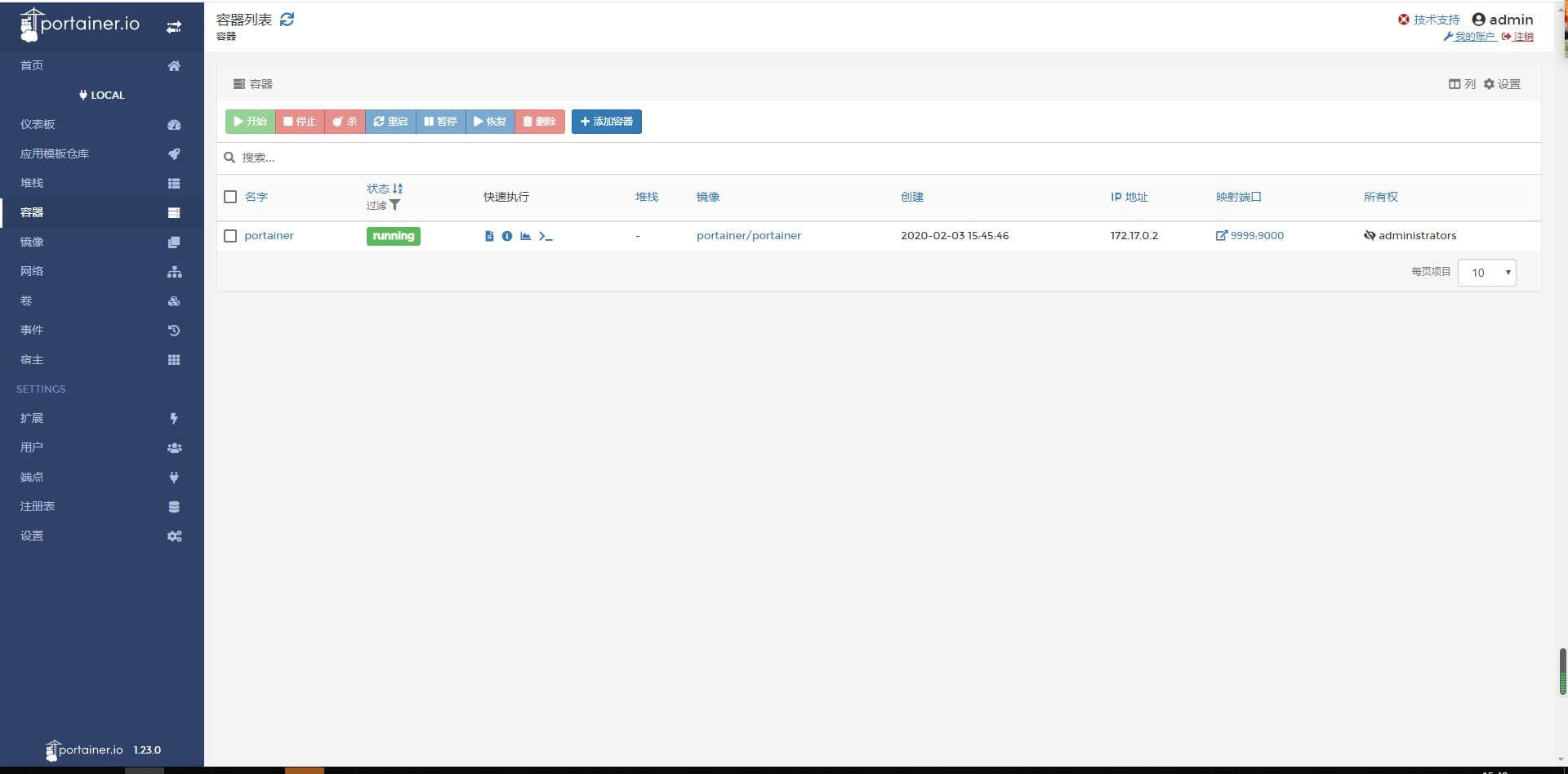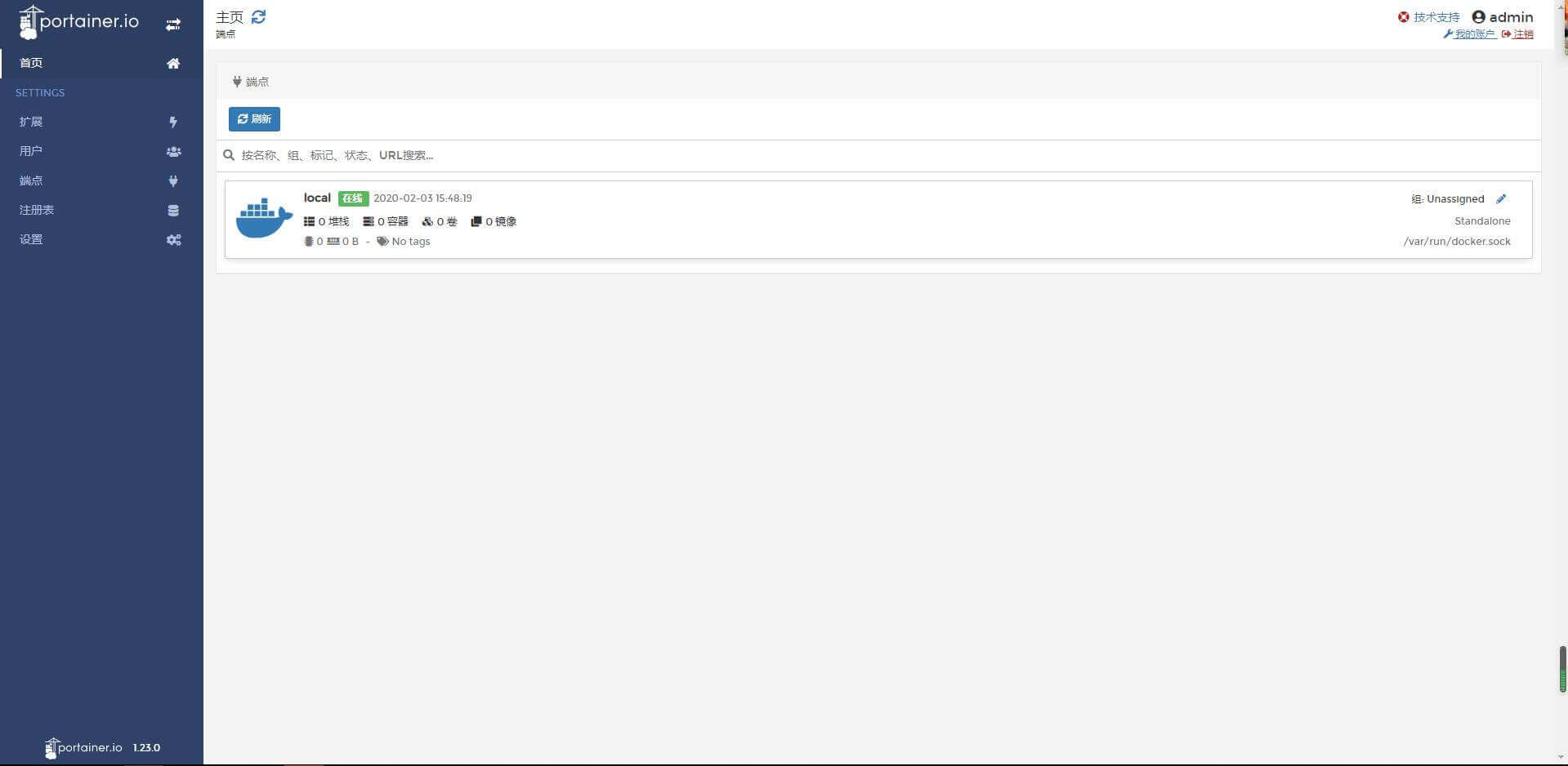 十二、好了,中文版的Portainer安装完成