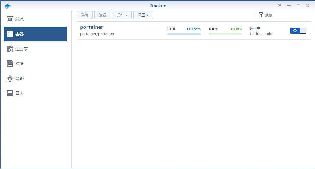 九、回到群晖系统,打开Docker,在容器这里,看到portainer已经在运行了;