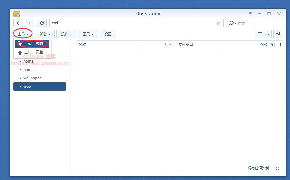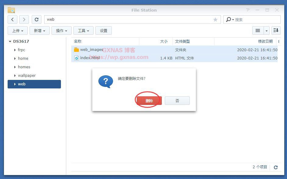 9、打开File Station,进入Web文件夹,把里面的文件夹和文件全部删除;
