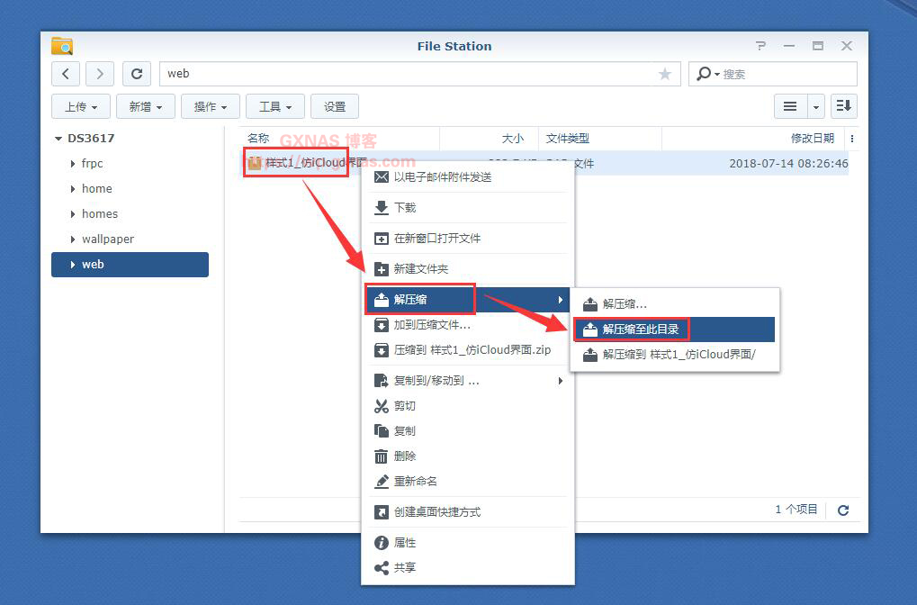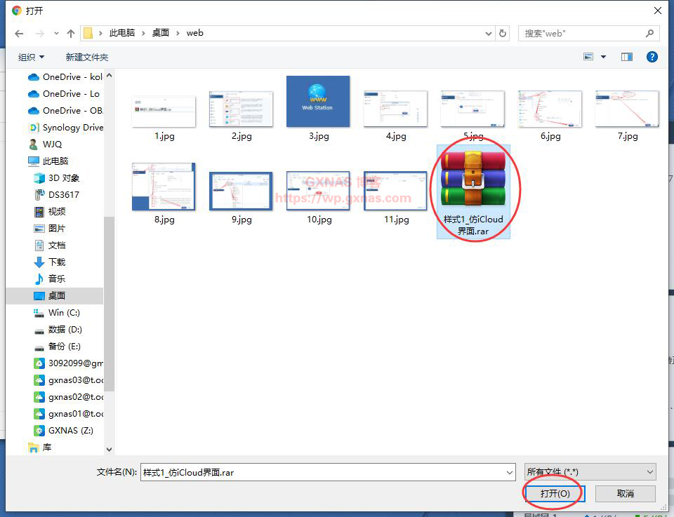 本教程以架设“样式1_仿iCloud界面”为例,架设后的效果详见:https://test.gxnas.com:1443/1_icloud/