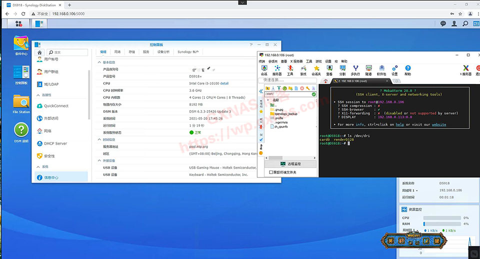 根据国外论坛xpenology.com的帖子说明:并非所有的9代cpu和10代cpu,用物理机安装群晖DS918+都可以启用硬件解码,主要表现在:用root登录到群晖的SSH下,敲命令ls /dev/dri 没有显示“card0 renderD128”字样,哪怕是重新打了核显补丁也没用,意味着用video等套件看影片无法使用GPU进行硬件解码。受到影响的CPU型号主要有: