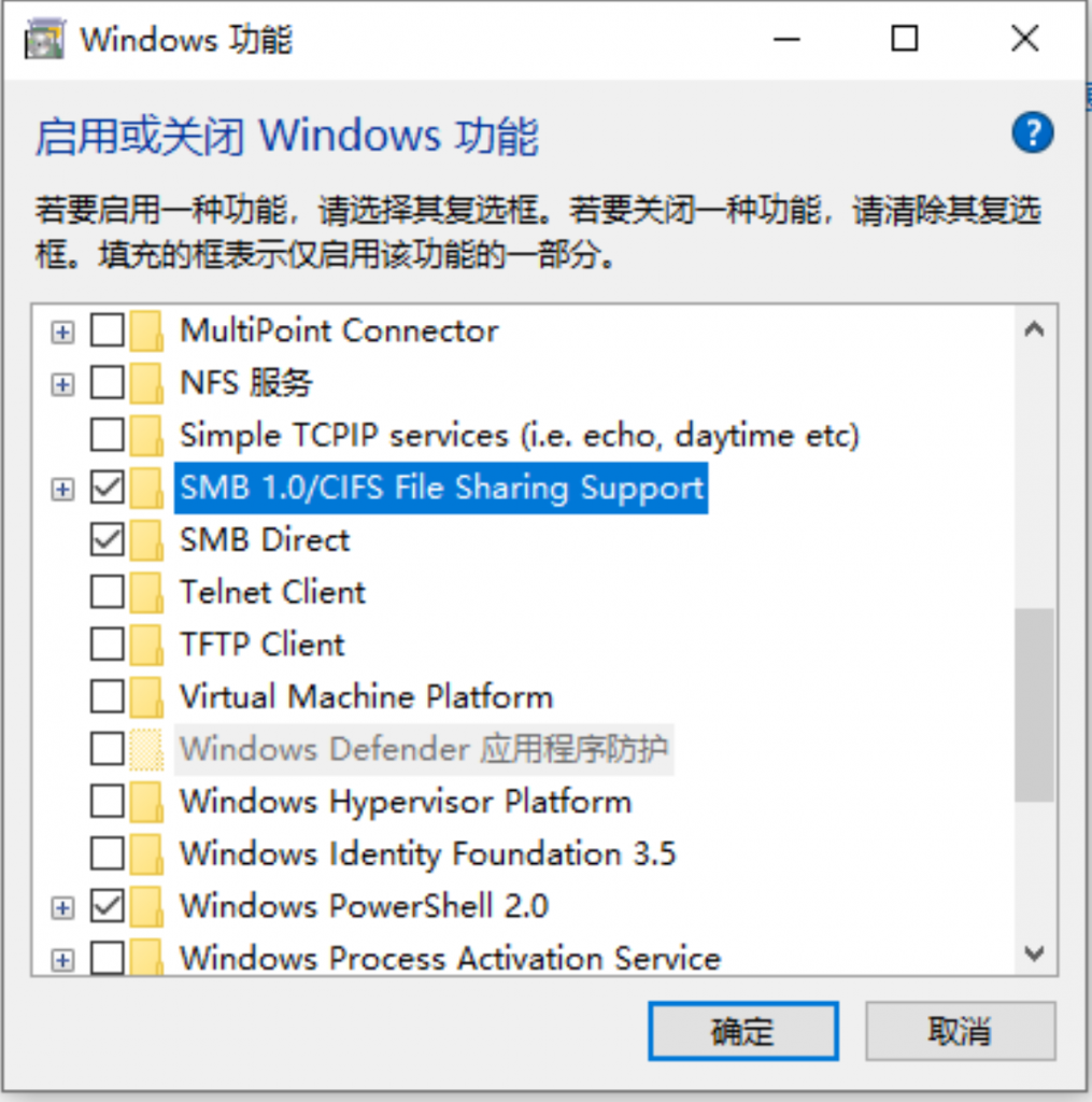 首页 教程 群晖 首先我们来看看映射网络驱动器失败会有什么提示解决方法1.打开WIN10控制面板选择程序2.找到里面的SMB 1.0/CIFS File Sharing Support勾上,重启电脑现在就已经可以成功添加群晖磁盘的网络驱动器了 原文地址:https://www.vediotalk.com/archives/15516