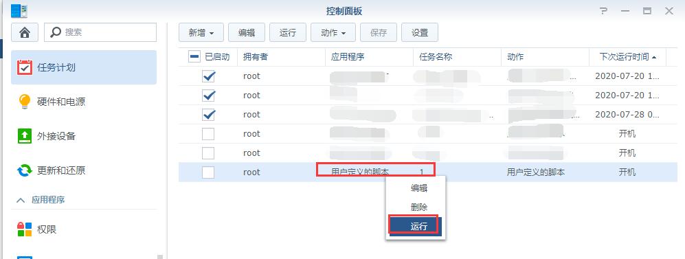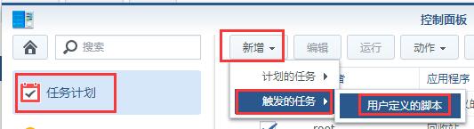 4、打开群晖的控制面板-任务计划,新增-触发的任务,用户自定义脚本;
