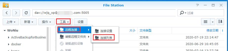 五、操作完成以后,如果不需要用了,在2号机的File Station的菜单,工具-远程连接-连接列表;