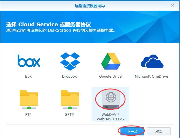 二、选WEBDAV / WEBDAV HTTPS 这个,下一步;