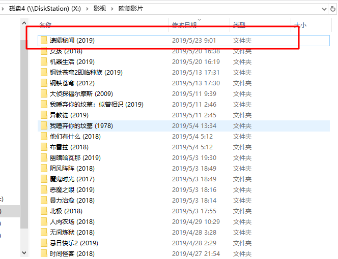 把遗孀秘闻 (2019)复制下来后,把文件夹名称和视频文件名称都改为遗孀秘闻 (2019)