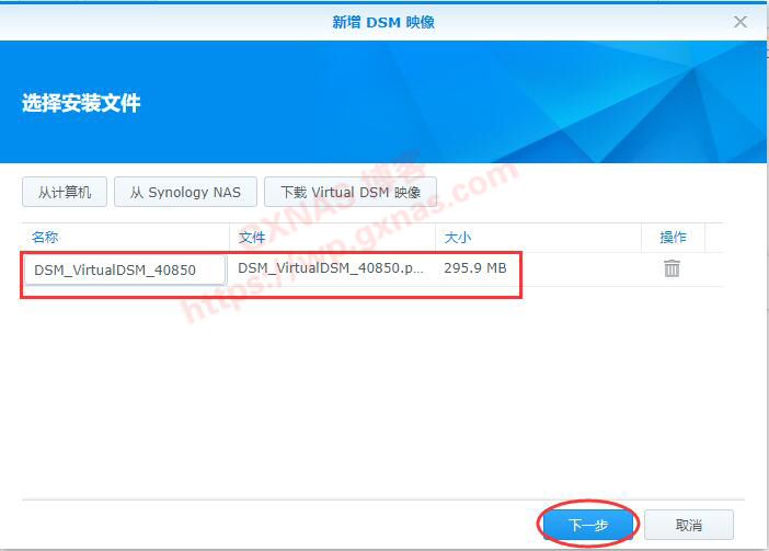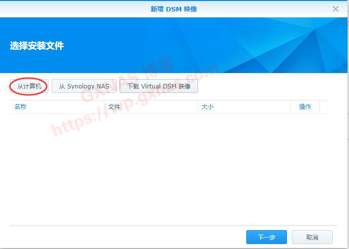三、由于我已经事先下载好DSM7.0的安装包,所以我这选择“从计算机”,如果你还没下载DSM7.0安装包的话,需要先下载到电脑;