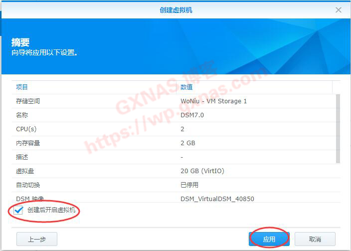 十四、勾选左下角“创建后开启虚拟机”,应用;