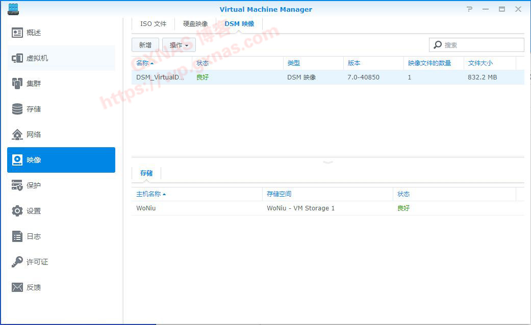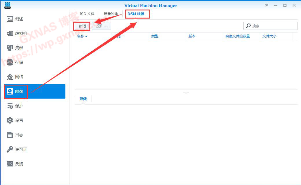 二、在左边菜单选择“映像”,在右边菜单选择DSM映像,新增;