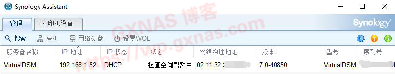 十九、等到显示“运行中”的时候,在电脑上用群晖助手搜索;