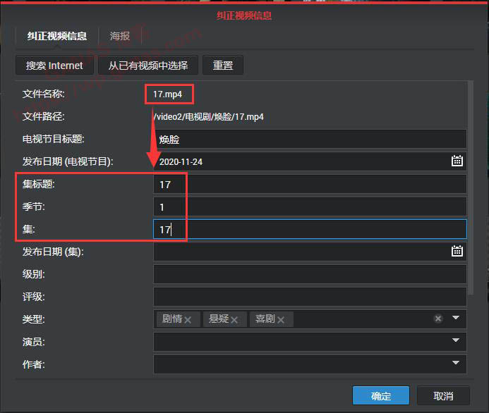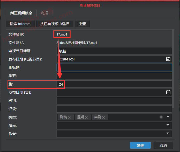 7、好吧,根据实际集数,手动把“集标题”、“季节”、“集”这三个纠正过来。