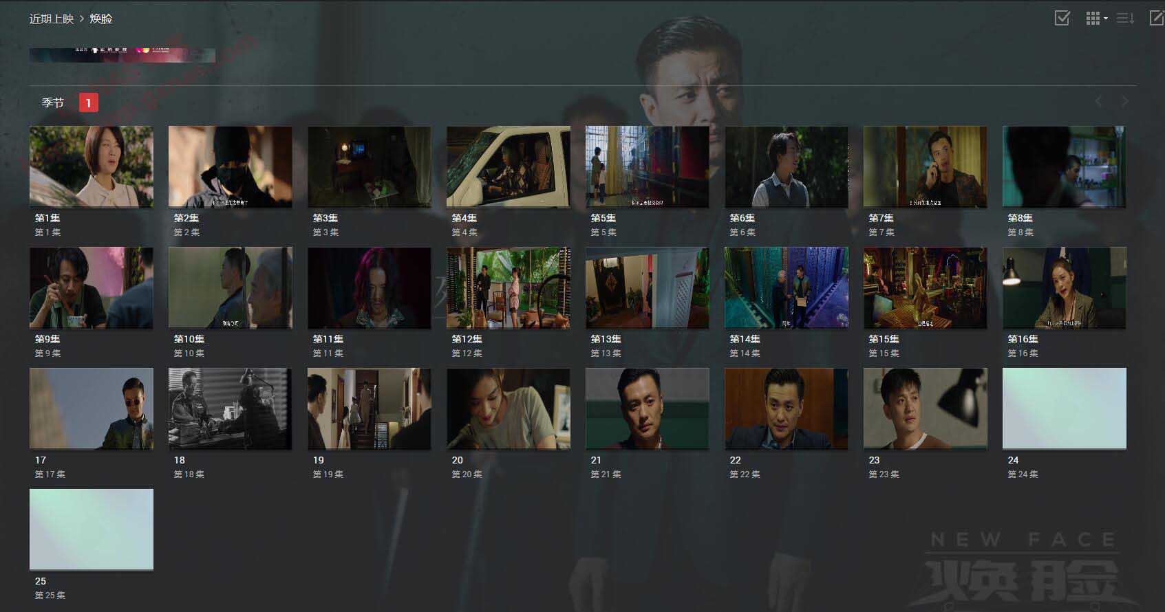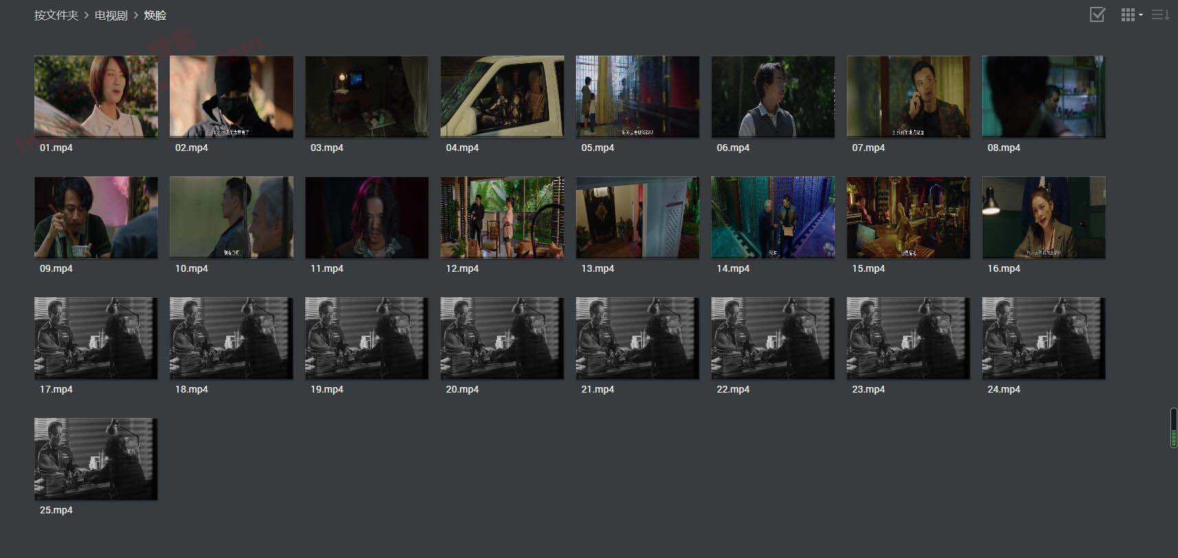 4、这个视图下,可以看到25个视频都有显示,但是看到从17集后的缩略图显示一样,很明显的是不对的。