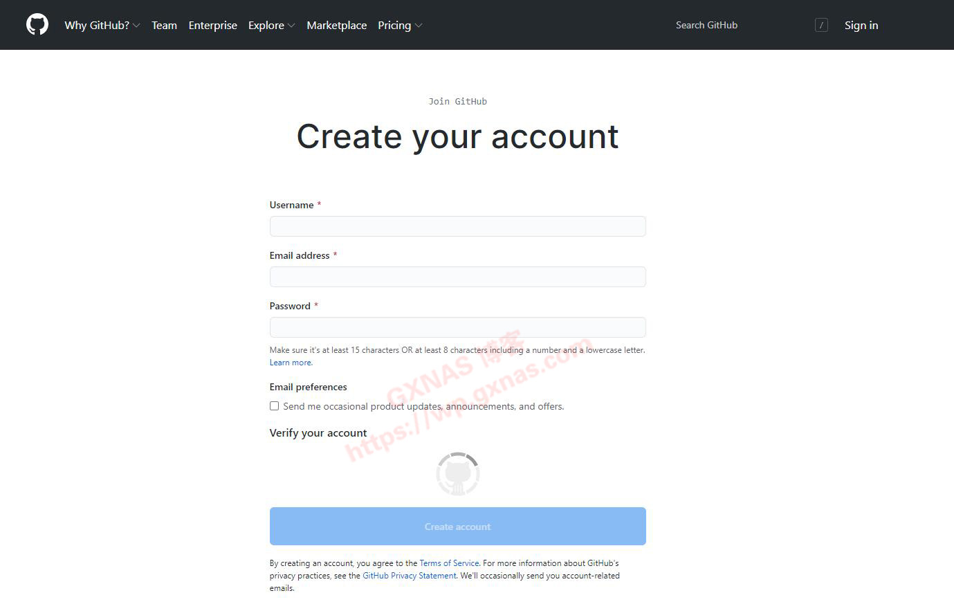 1、在电脑上,用浏览器到大名鼎鼎的GitHub注册一个账号,地址:https://github.com/join?source=login ,注册过程略过,注册好账号以后登录该网站(如果之前已经注册过该网站的,请直接登录即可,无须重复注册账号);