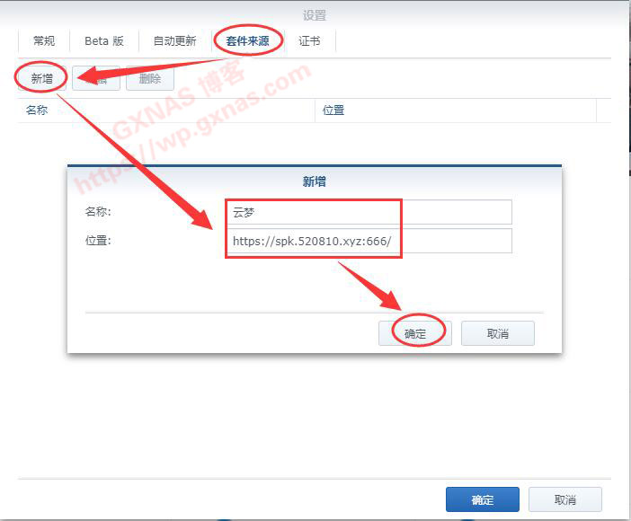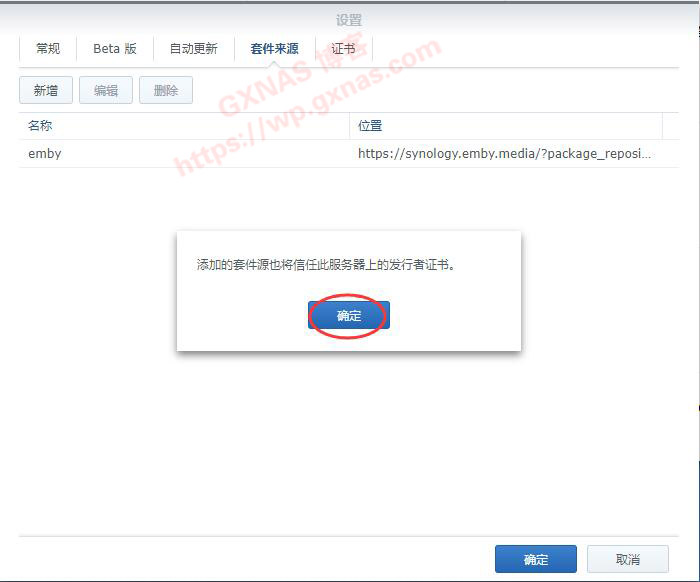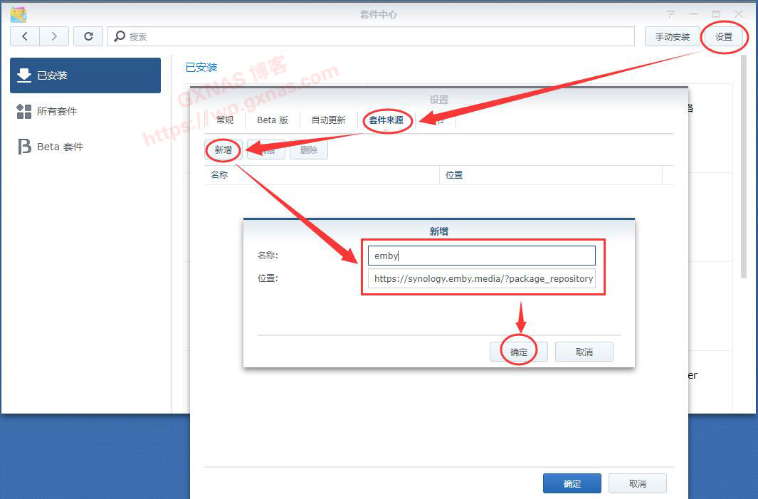 1、EMBY套件:在套件中心,设置,套件来源,新增,名称写EMBY,位置按照以下填写:
