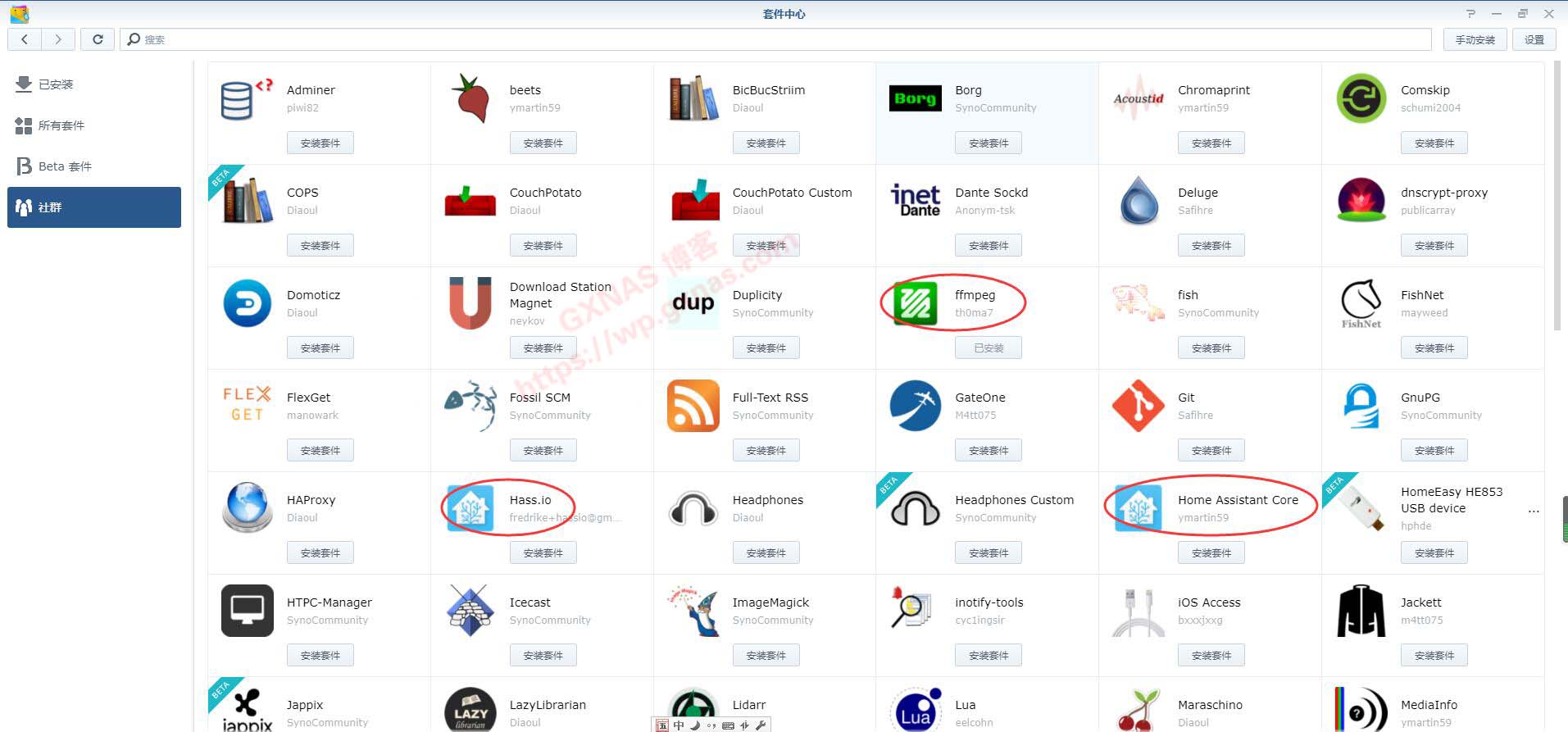 ③这个的套件内容挺多的,用的比较多的是:视频解码用的FFMPEG,搭建智能家居用的Hass、HomeAssistant、Mssquitto,以及下载神器transmisson;