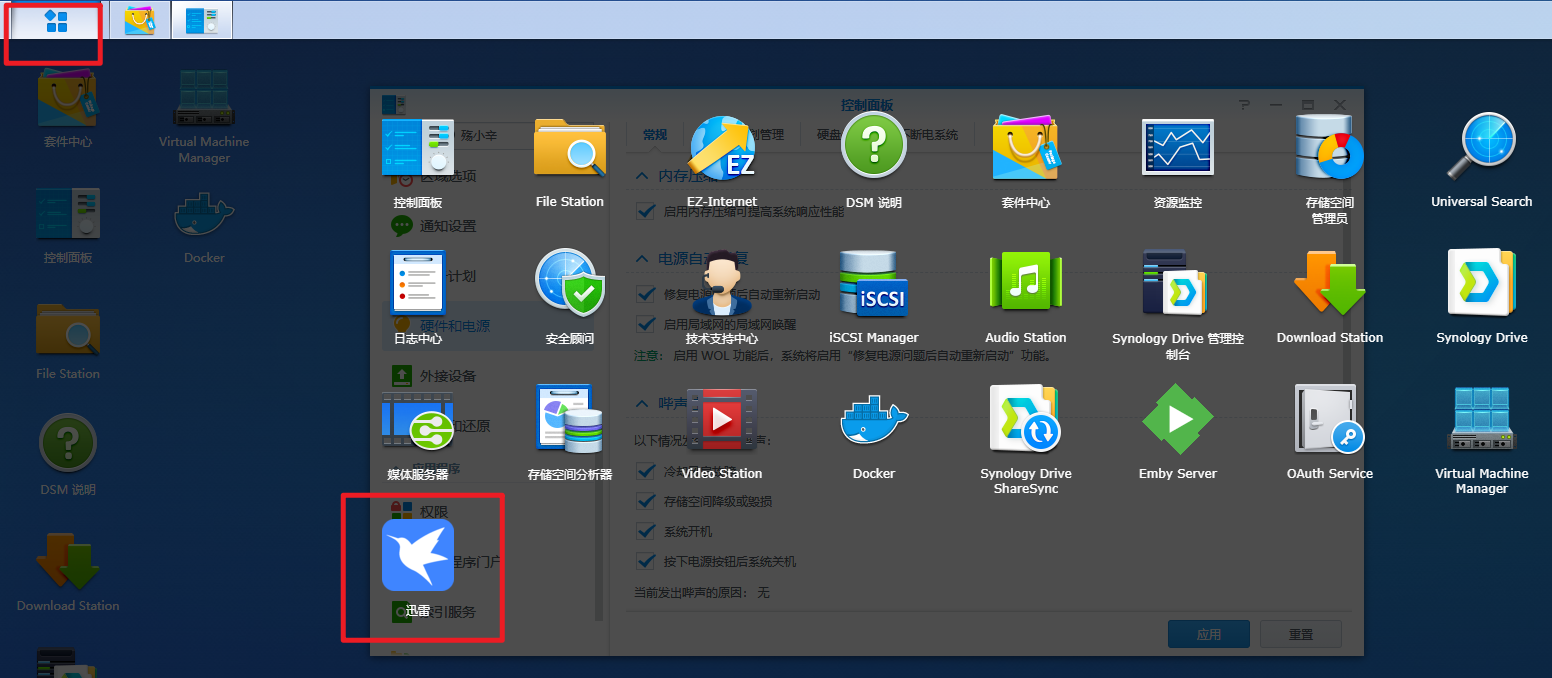 8、点左上角群晖主菜单,就看到刚刚安装的迅雷了;