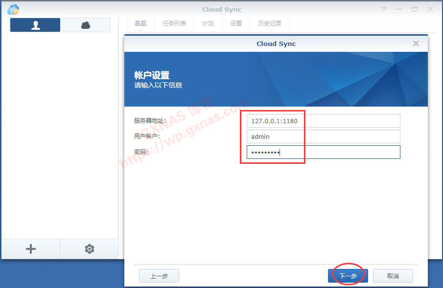 十七、回到群晖,打开Cloud  Sync套件,选WebDAV下一步;
