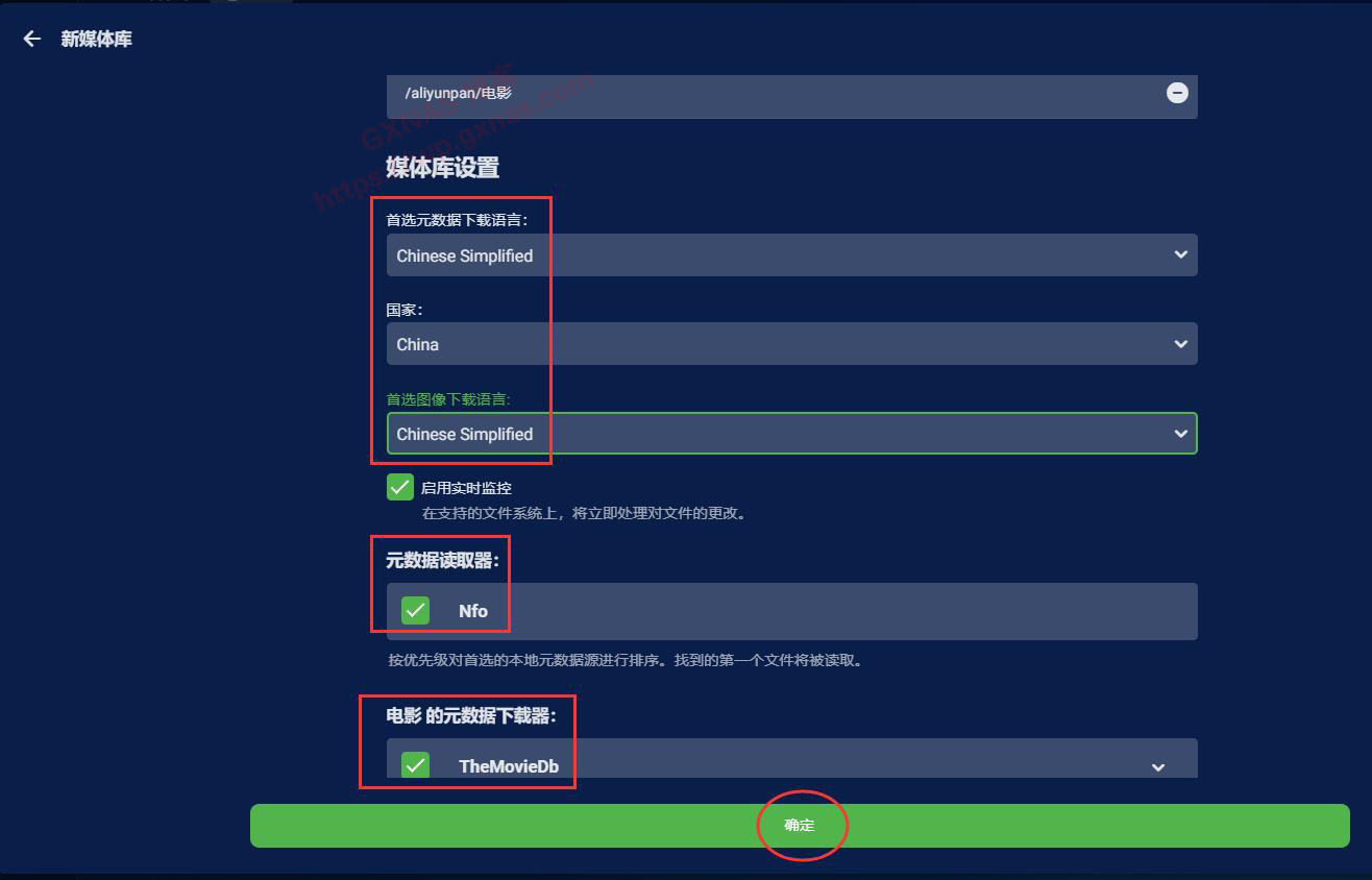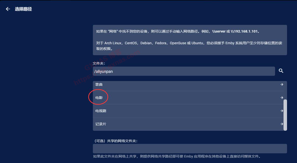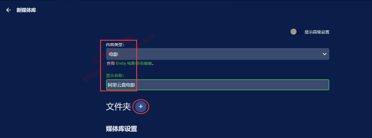 二十八、内容类型选电影,名称写阿里云盘电影,在文件夹旁边的+点一下;