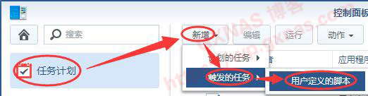 二十二、回到群晖控制面板,任务计划,新增,触发的任务,用户自定义的脚本;