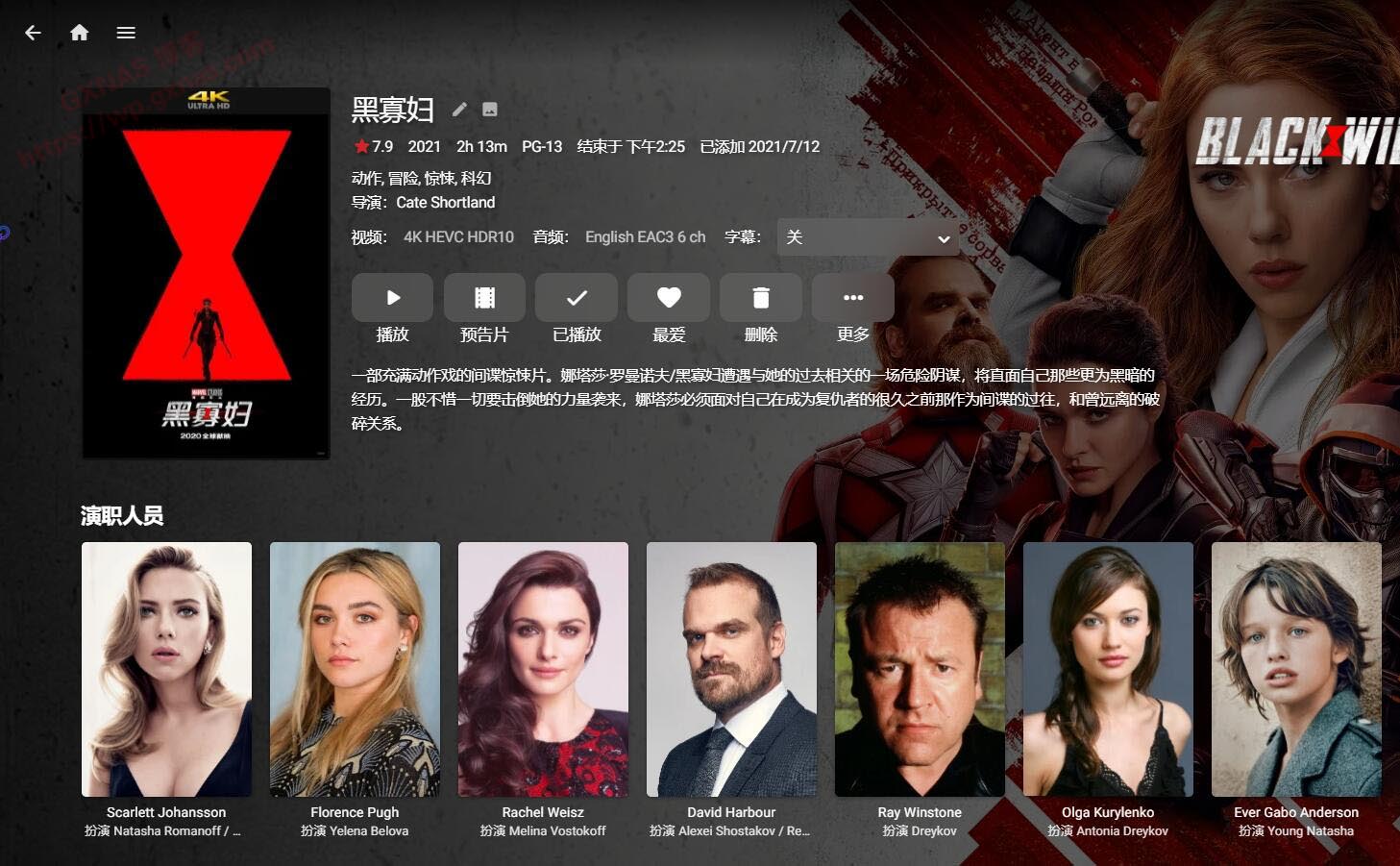 三十七、找一部电影点进去看看,视频和音频编码显示正常,刮削海报信息完整,没问题;