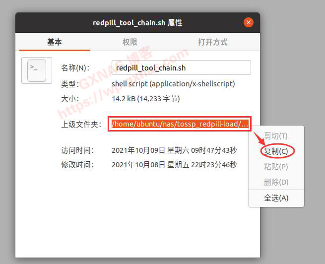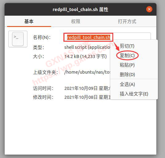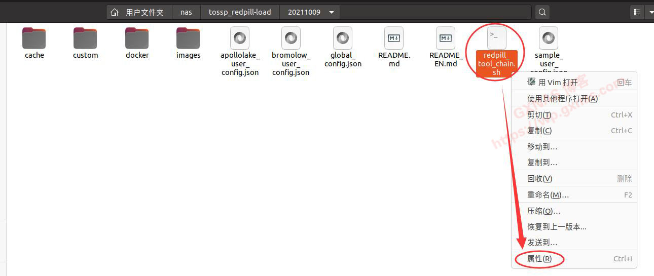 24、再回到文件属性这里,把“redpill_tool_chain.sh”这个文件名复制一下;