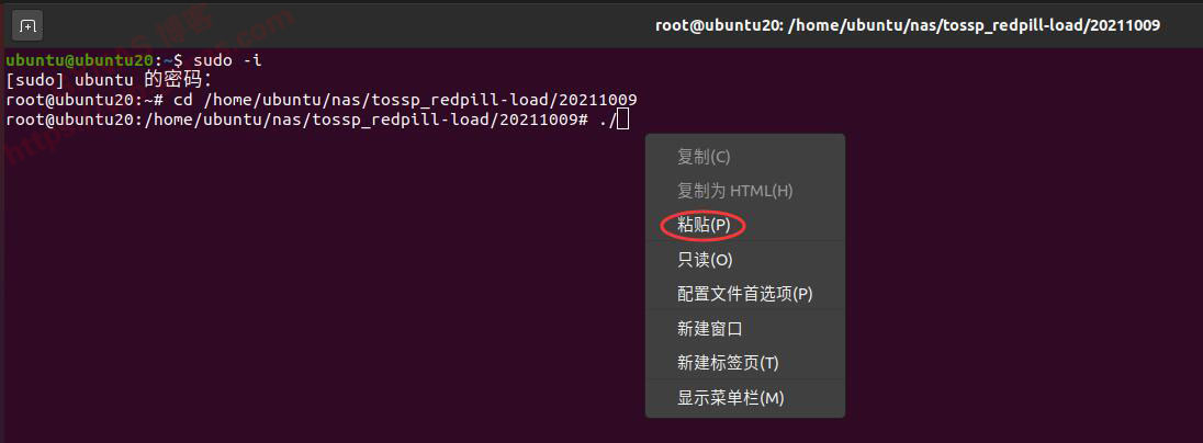 25、输入“./”跟一个空格后,点右键,粘贴,此时自动把第24步骤复制的文件名粘贴上去;
