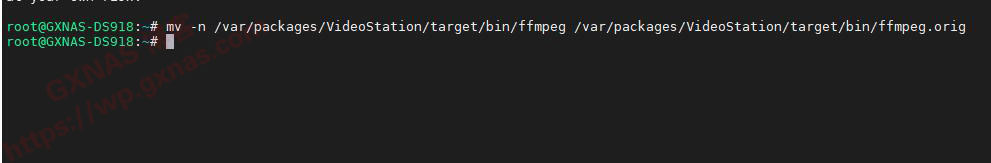 mv -n /var/packages/VideoStation/target/bin/ffmpeg /var/packages/VideoStation/target/bin/ffmpeg-BACKUP